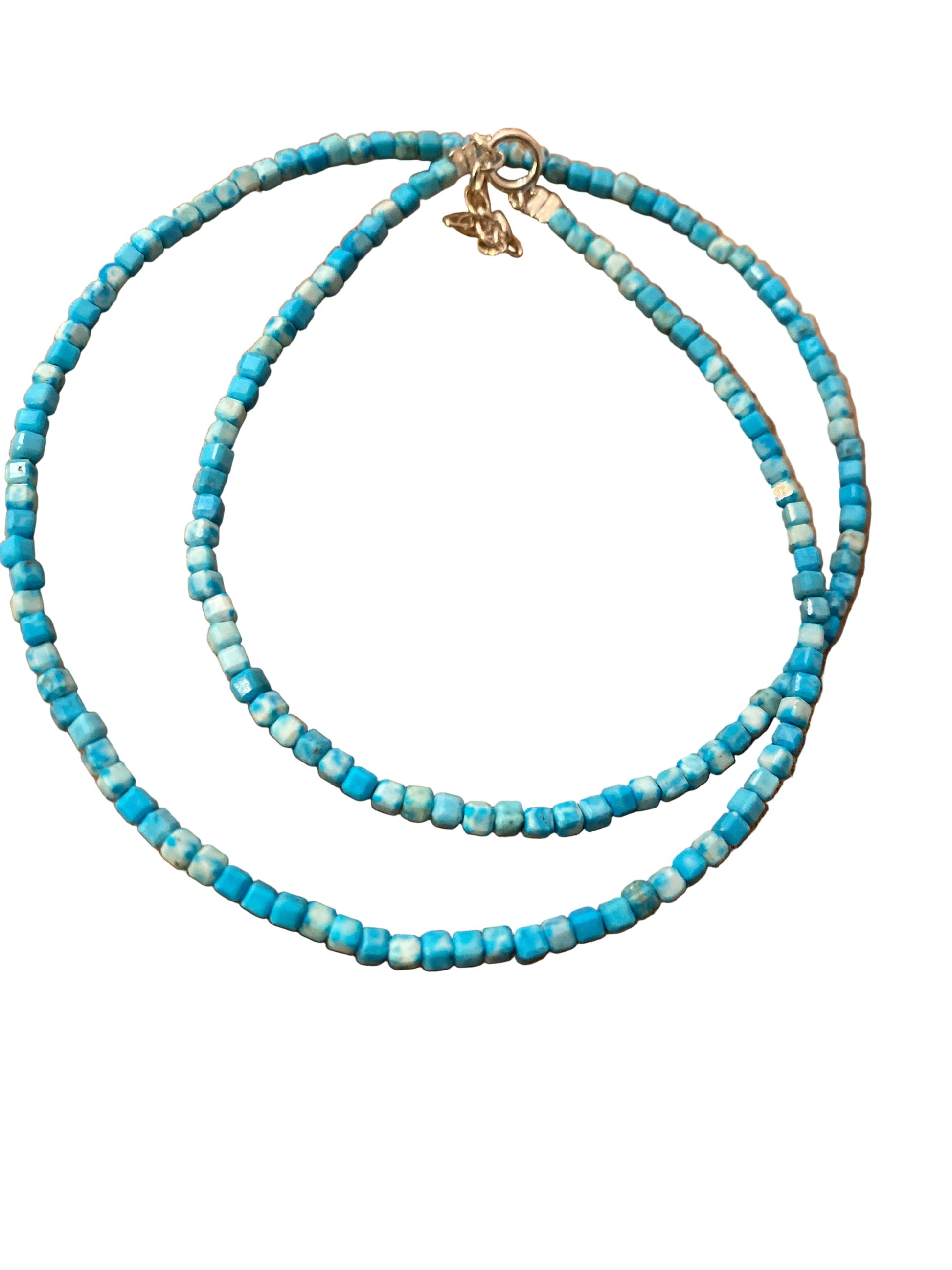 This playful turquoise beaded necklace adds a pop of color and charm to any outfit. Measuring 16 inches with an adjustable length up to 18 inches, it offers the perfect fit for your unique style. Bright, cheerful beads brighten your look while keeping things fun and fresh all day long.