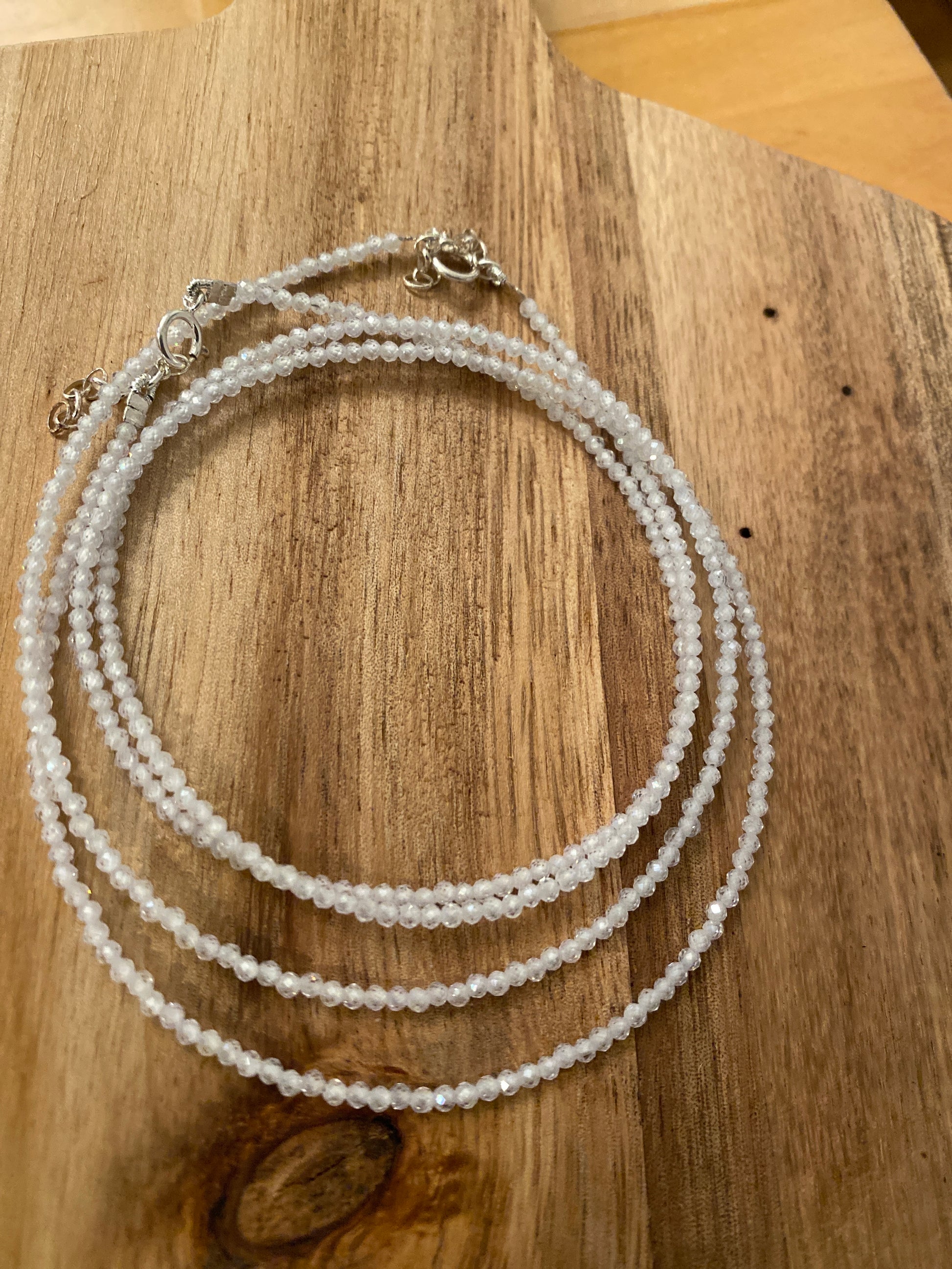 Turn heads with this elegant beaded necklace featuring stunning white sapphires. Perfect for adding a touch of sparkle to any outfit!