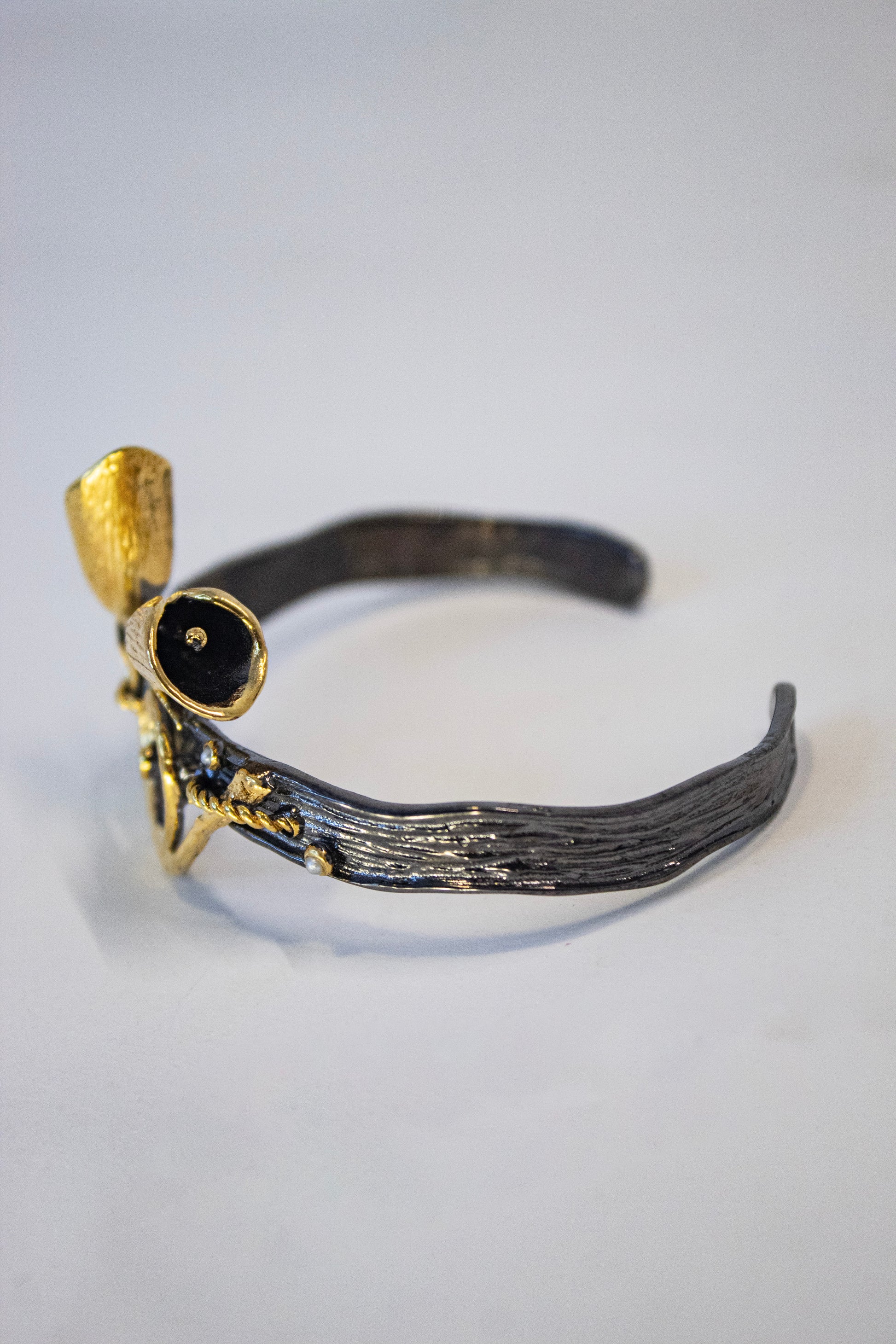 Hit up the summer gardens in style with this 'Canna Lily 14 K Vermeil bracelet Gun', the perfect accessory for your arm! Crafted from the finest gunmetal and 14 k Vermeil, this statement bracelet boasts a striking canna lily motif that's sure to turn heads. Ready, set, garden!