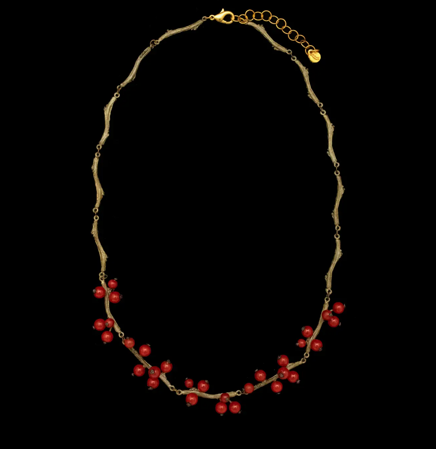 Add some playfulness to your winter style with Winterberry! This unique necklace is cast in bronze and hand-patined with a touch of fiery red. Perfect for adding a pop of color and quirk to any outfit. (Winterberry: wear a berry with a zing!)