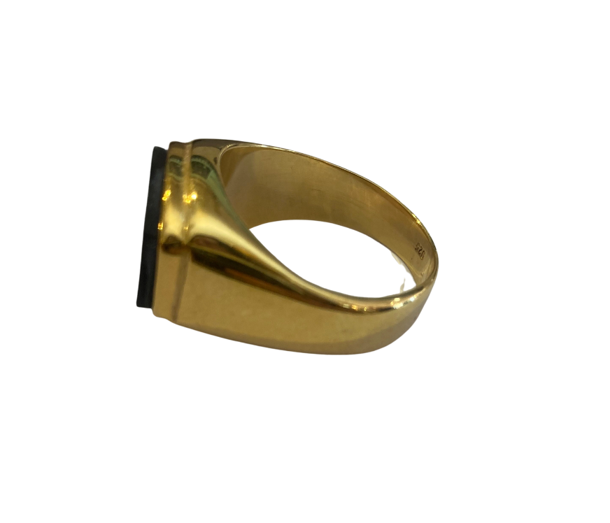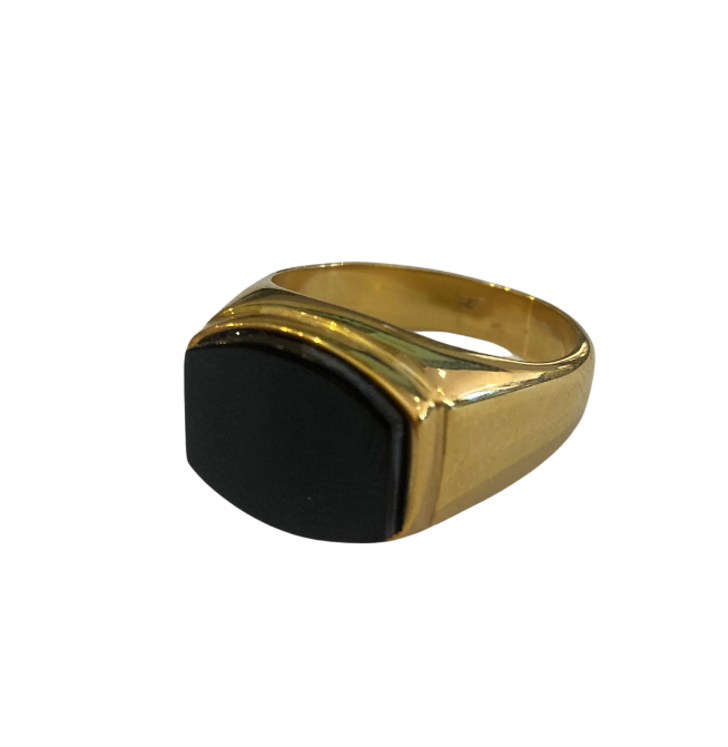 Men's Black Onyx Gold Signet Ring bears the elegance of simplicity and offers a unique experience. Achieving this simplicity in high-end jewelry is fascinating. That is a statement piece for all who love simple and elegant styles. A stone of self-control, onyx aids one in achieving and "grinding" out their goals and stimulates good decision-making. It is believed that onyx is a protective stone worn when facing adversaries. Therefore, it is particularly suggested for those who are having issues in their relationships. Black onyx reinforces positive feelings and promotes healthy communication between couples.