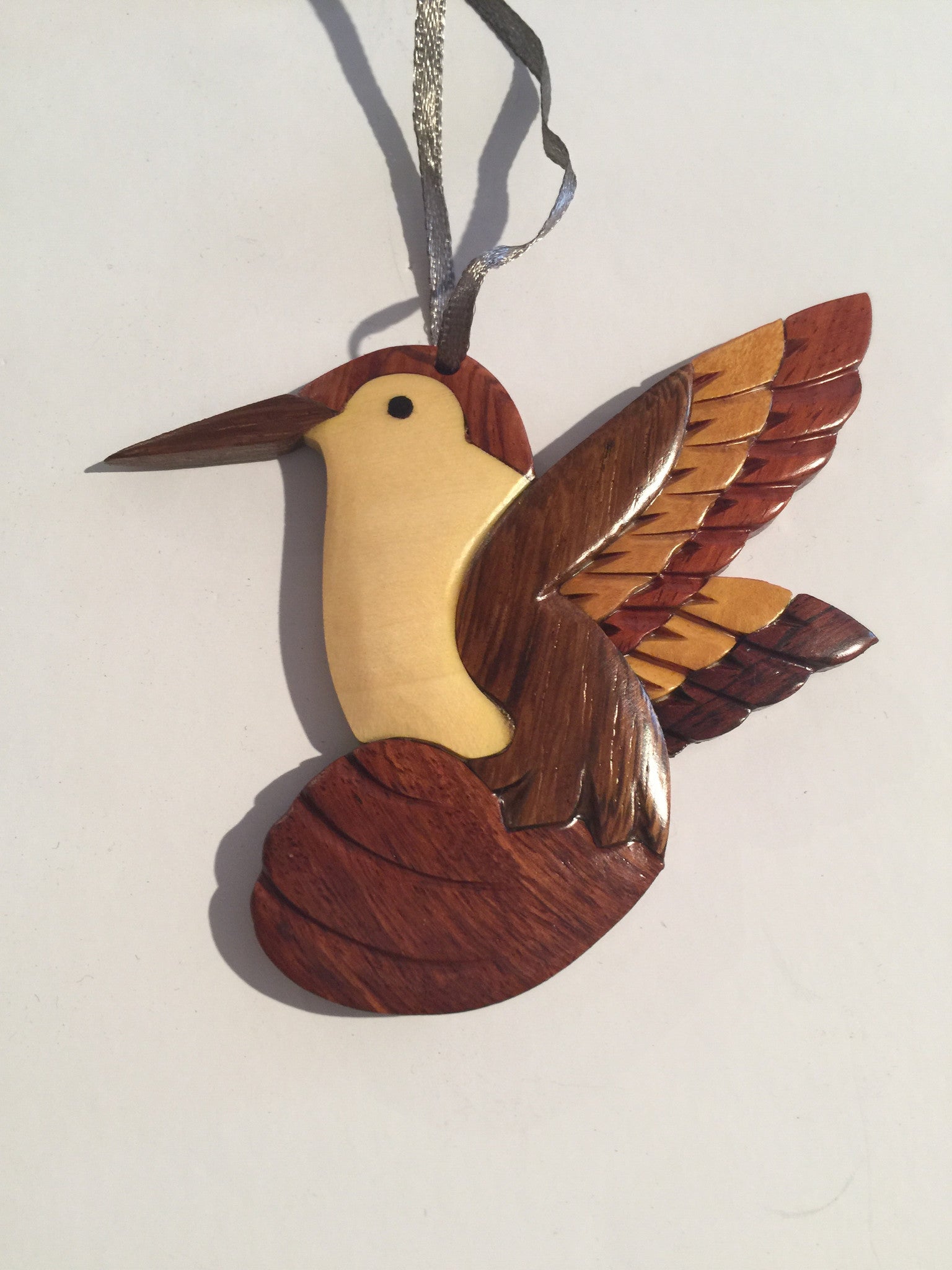 "Add a touch of whimsy to your home decor with our hand-carved Hummingbird Wooden Ornament. Crafted from high quality wood, this ornament is both charming and unique. Perfect for bird lovers and those looking to add a playful touch to their space. (Goes great with a cup of tea and a good book!)"