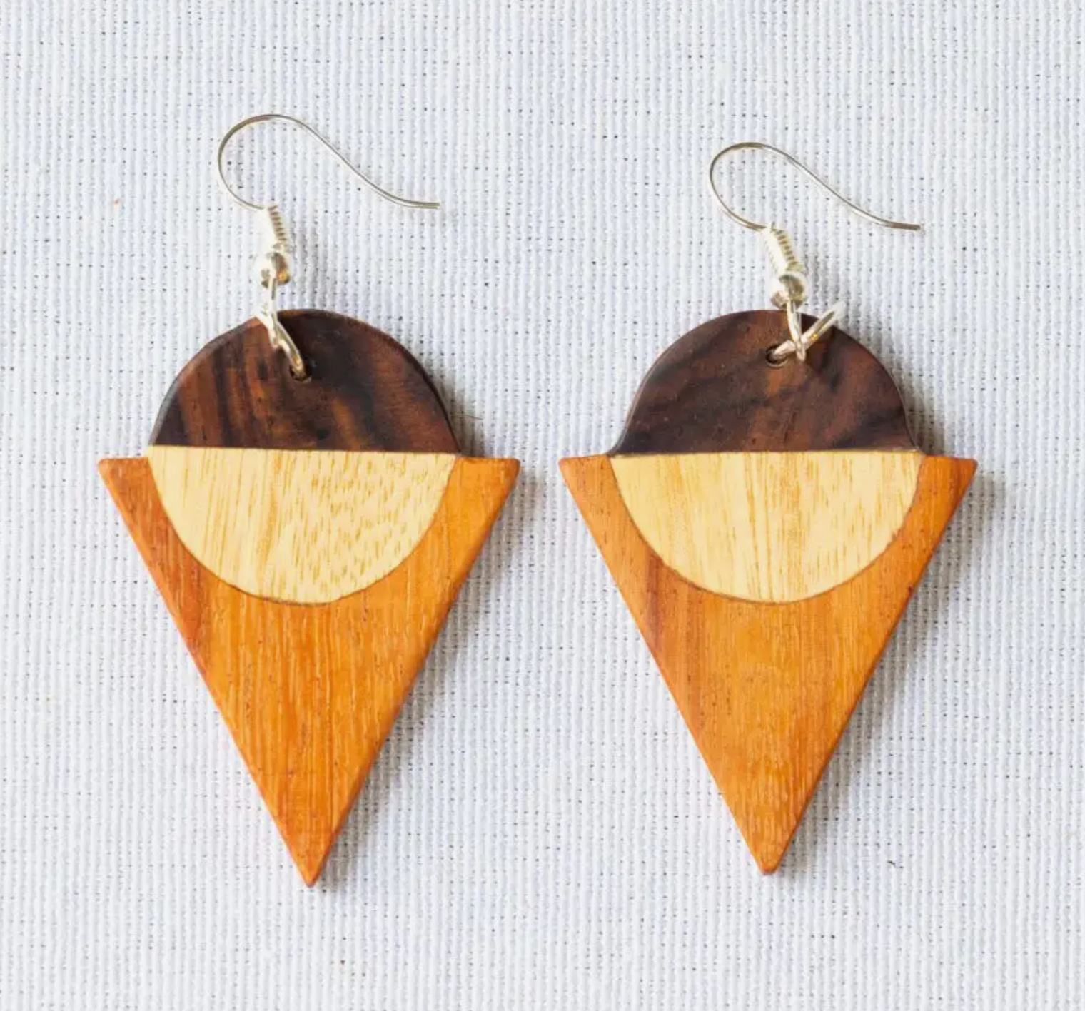 Up next in our beloved Wood Earring Collection are these unique Modern Geometric Wood Earrings! Made from three different types of reclaimed wood, these earrings are truly stunning! Our wood earrings are all made from reclaimed wood and are lightweight and comfortable to wear. As always, Handmade and Fair Trade!