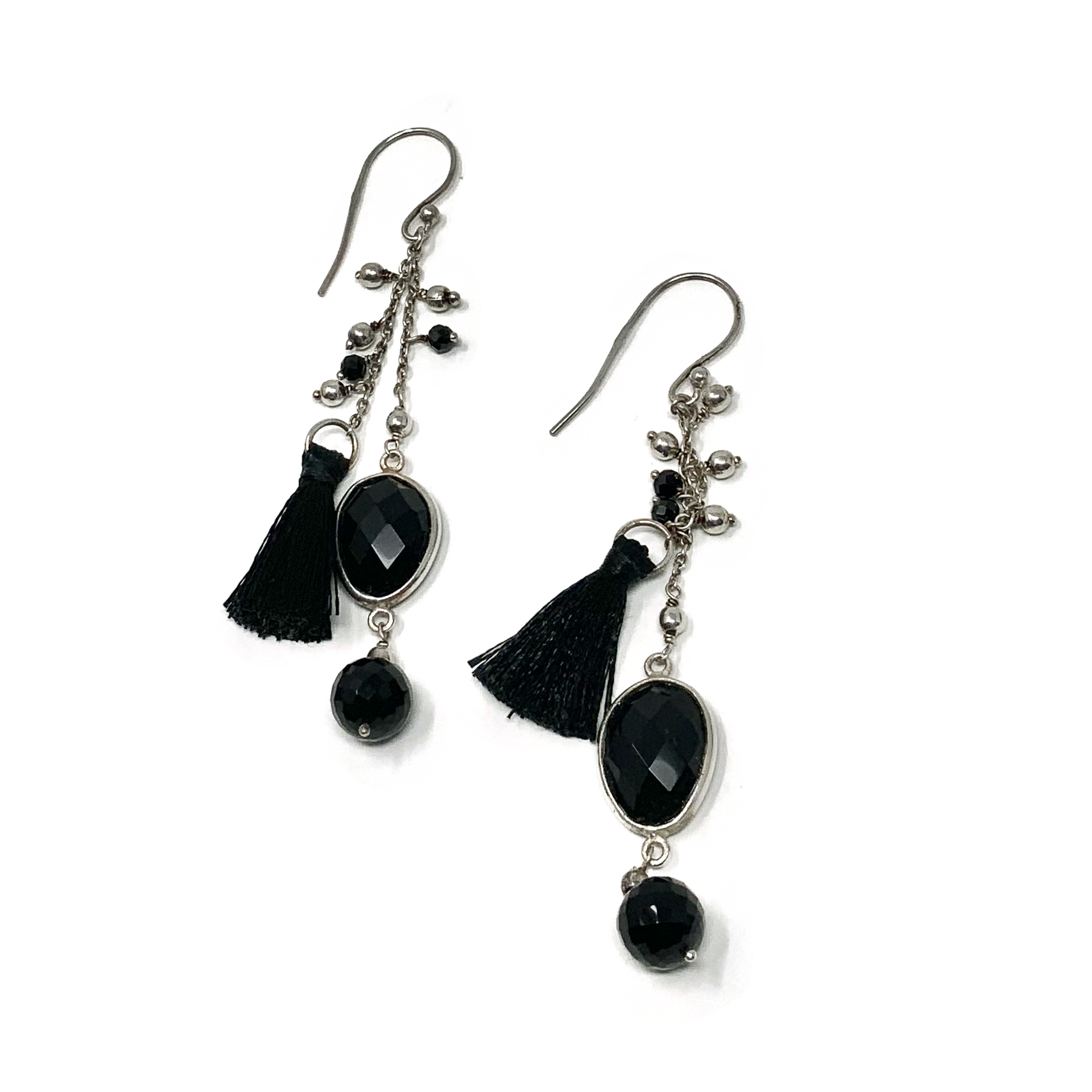 Sparkling Onyx gemstone is a highly metaphysical stone. It has a calming effect on one's awareness and induces deep meditative states. The tassel adds flair and uniqueness to such a special pair of earrings. It is a stone that allows one to become aware of the thoughts and feelings of others, as well as their own.