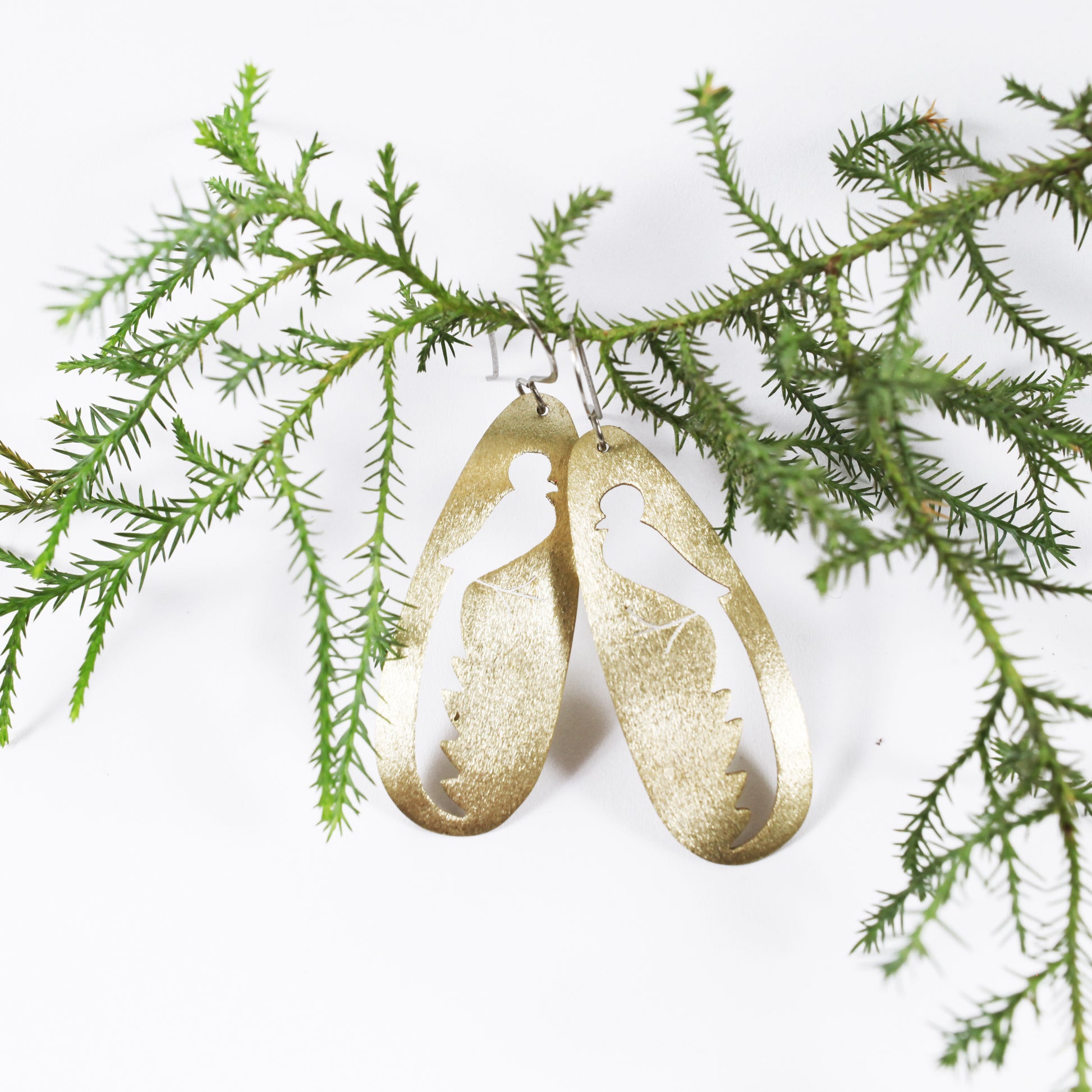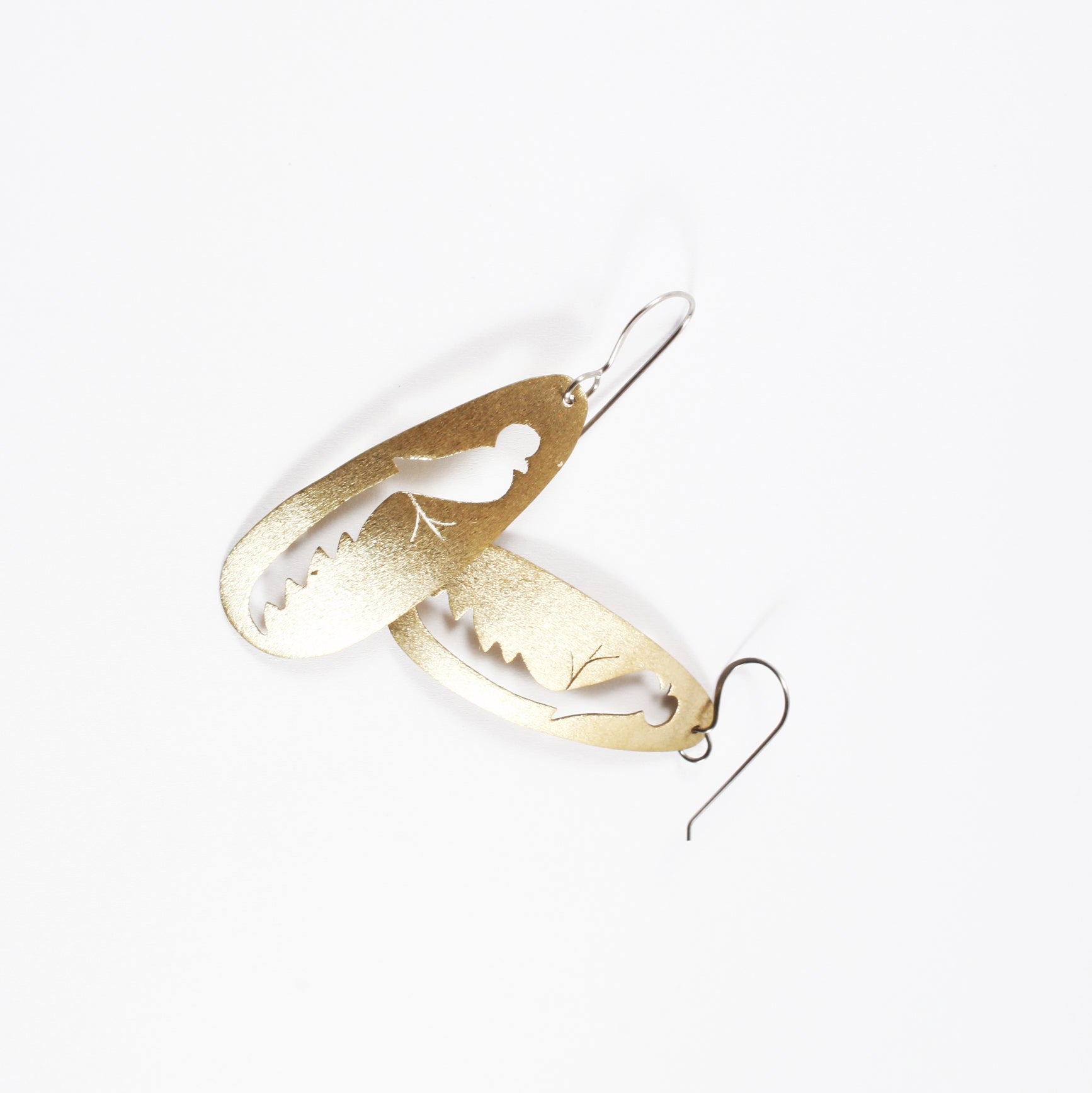 Oval Silver and Copper Brush Quetzal Cutout (hypoallergenic post.)