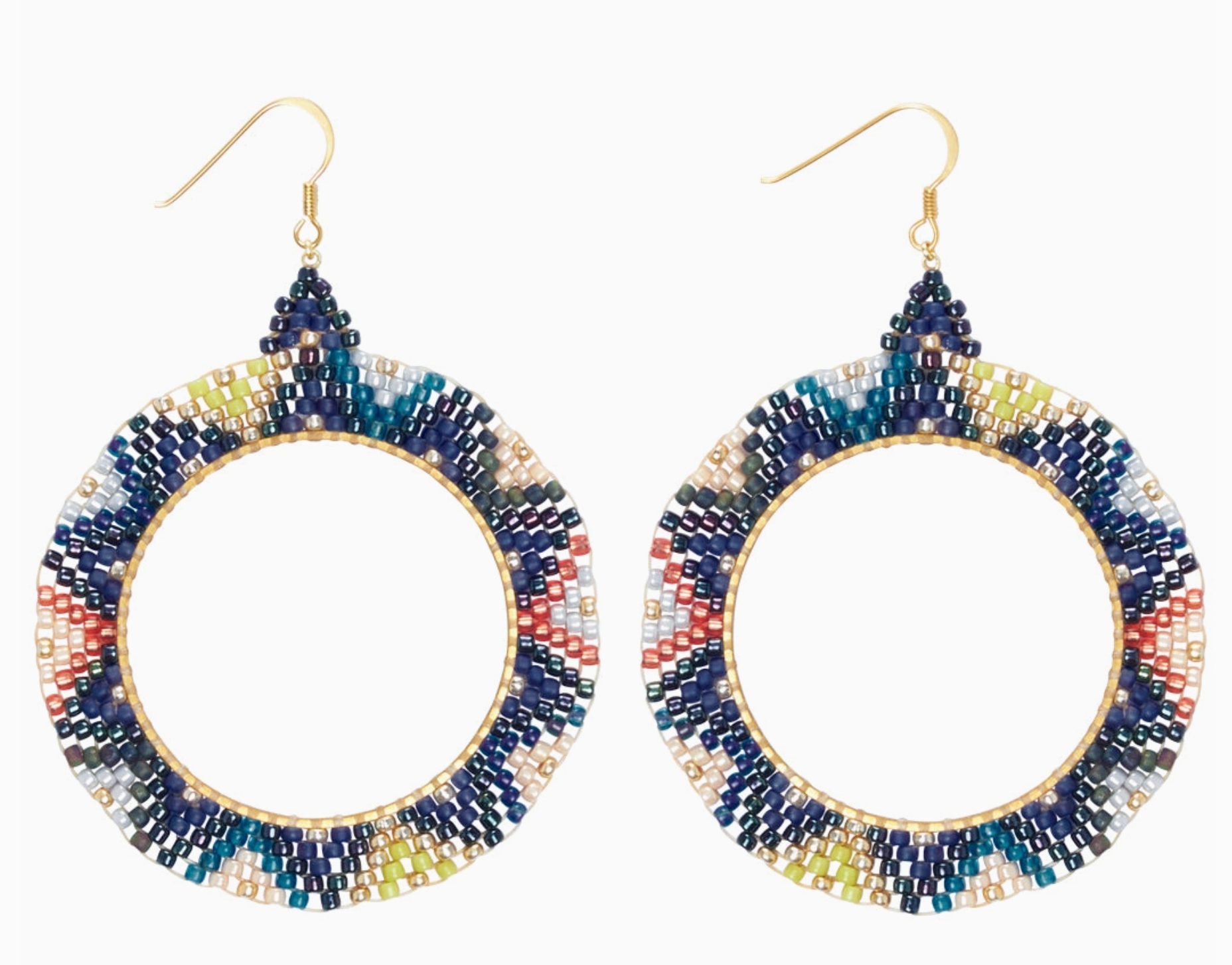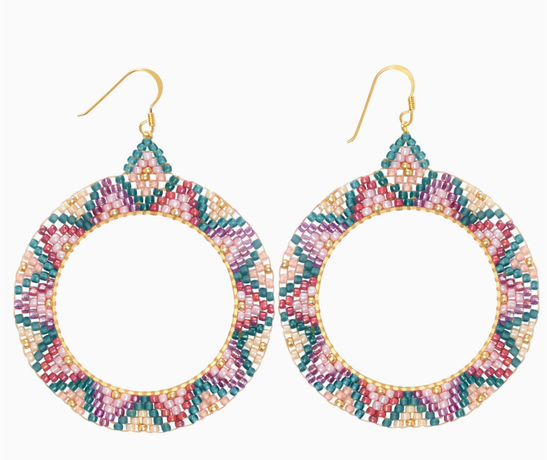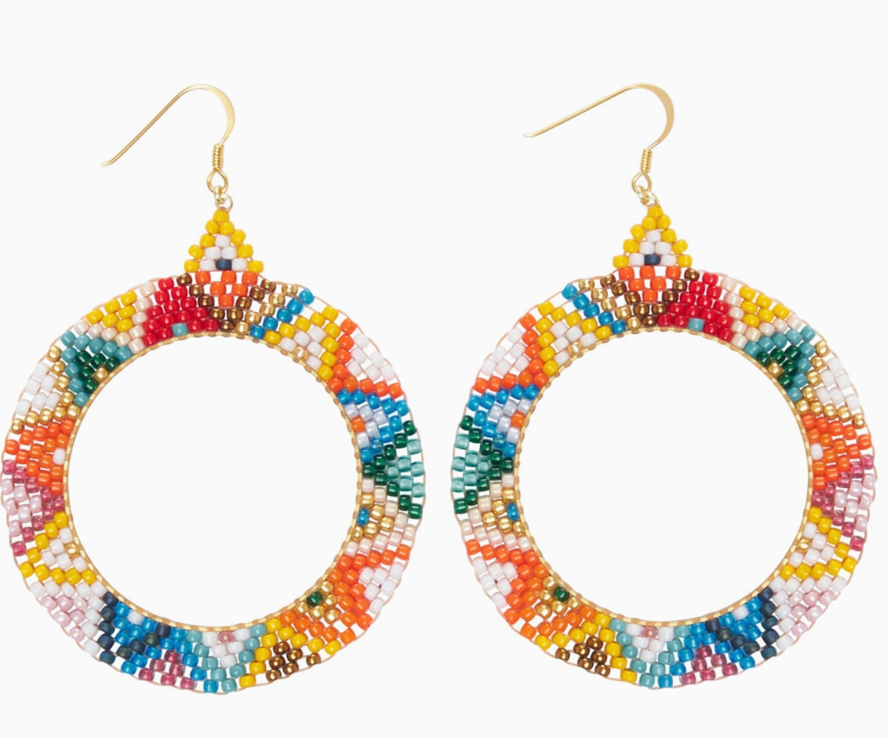 Make a bold statement with beaded sunbursts. These hoop earrings are handmade and fair trade from Thailand. 2.5" drop.