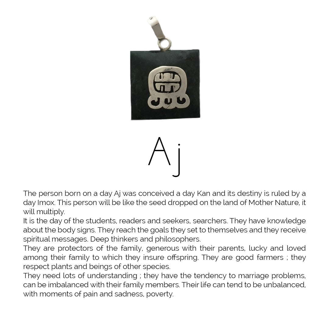 Square Jade Sterling Silver Maya Glyph Pendant