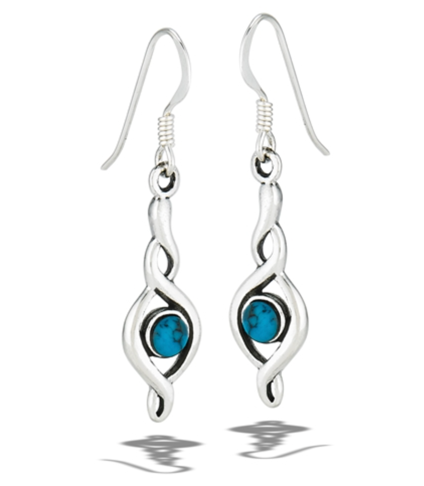 Sterling Silver Dangle Swirl Earring With Synthetic Turquoise